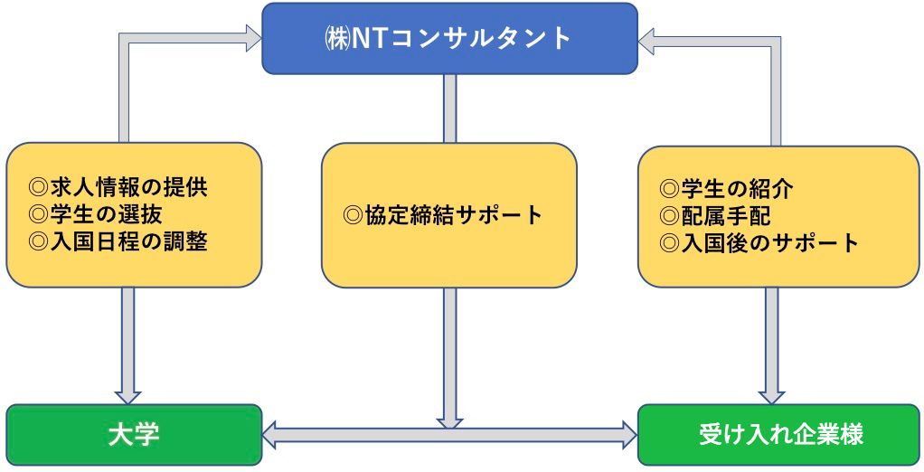 インターンシップ業務の全体図と当社の役割